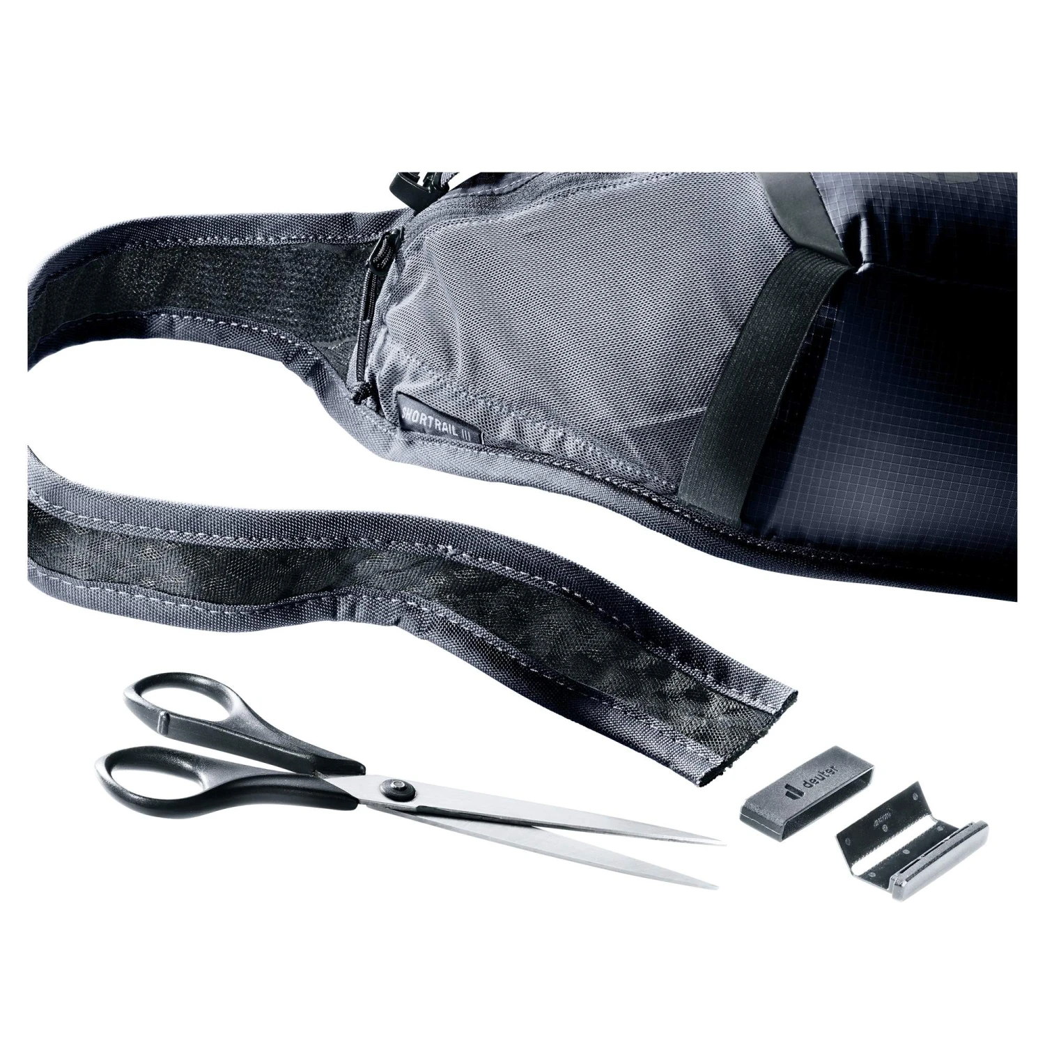 Die Shorttrail III hat einen auf deinen Hüftumfang zuschneidbaren Bauchgurt aus luftigem Material, der für einen festen und komfortablen Sitz sorgt. Ihr Einsatzzweck sind anspruchsvollere Läufe, gerne auf dem Trail. Speziell dafür ist sie mit einer Stockhalterung ausgestattet und einem Durchlass, um die Verwendung einer Trinkblase zu ermöglichen. In ihren Fächern ist zusätzlich genügend Platz für deine Laufausstattung: Verpflegung, Stirnlampe, Notfallausrüstung, Wertsachen und Smartphone.