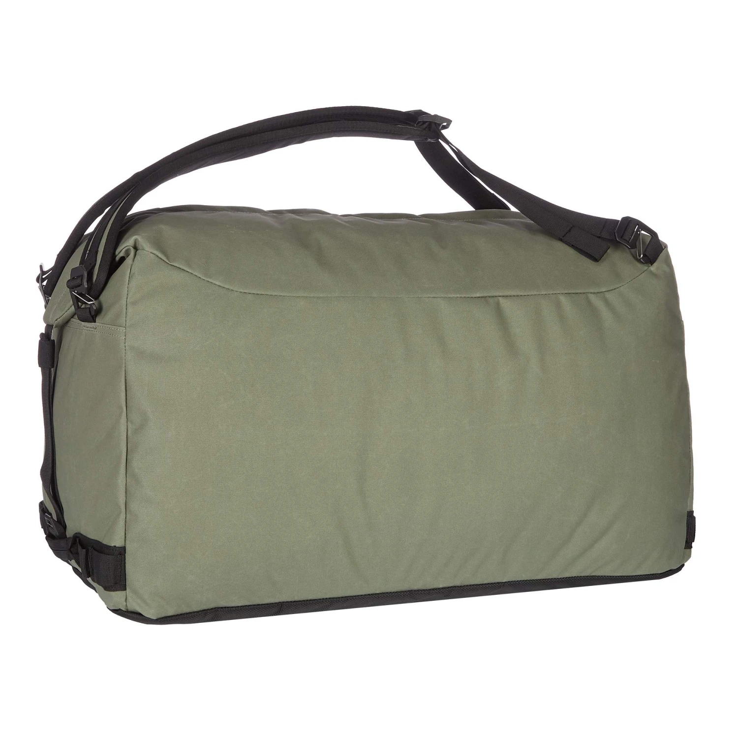 Die Traveltopia Duffle 65 überzeugt mit einer umweltbewussten, wachsartigen Beschichtung, die komplett ohne PFC und PVC auskommt. Gleichzeitig sorgt diese auch für einen lässigen Vintagelook.
