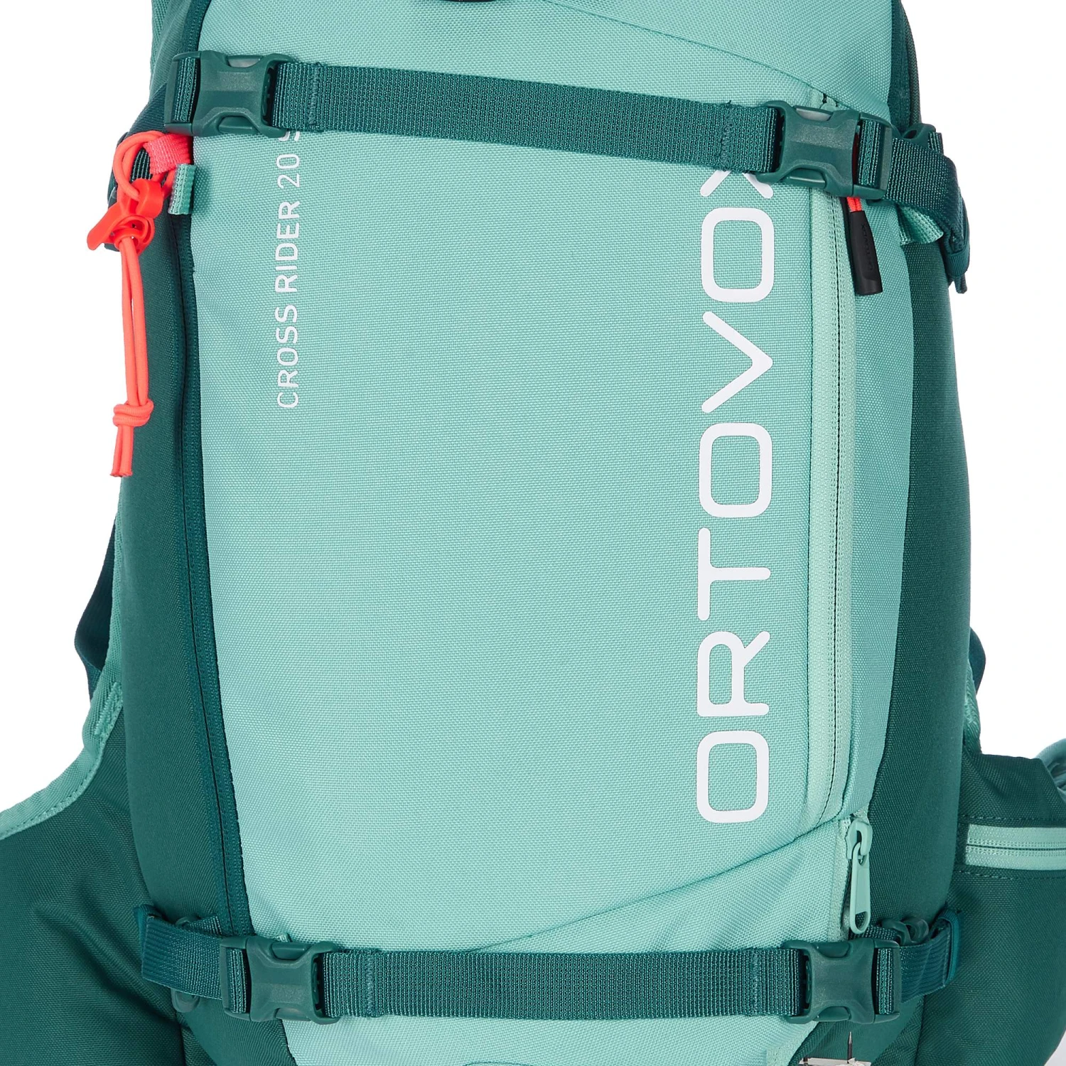 Das Hauptfach des Cross Rider 20 S ist sowohl über die Front als auch den Rücken zu erreichen. Innen befindet sich ein separates Organizerfach für die Lawinenschaufel und Sonde. Hier findest du auch die Notfallkarte für den Ernstfall. Das äußere RV-Fach für die Winterkarte ist besonders auf Touren praktisch. Ein weiteres RV-Fach befindet sich in Griffweite auf dem Hüftgurt.