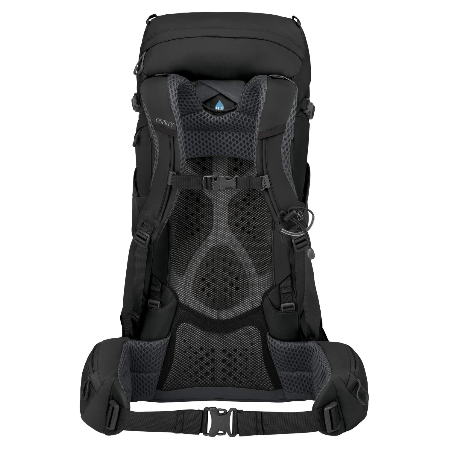 Das neue Airscape-Tragesystem besteht aus einem Kontaktrücken mit leichtem Rahmen und Rückenplatte. Das Rucksackgewicht wird über den Rahmen gleichmäßig auf die Hüfte umgeleitet. Strategisch platzierte, perforierte Schaumstoffpolster schaffen atmungsaktive und bequeme Auflageflächen. Im Lumbalbereich kommt ein größeres, ergonomisch vorgeformtes Polster zum Einsatz.