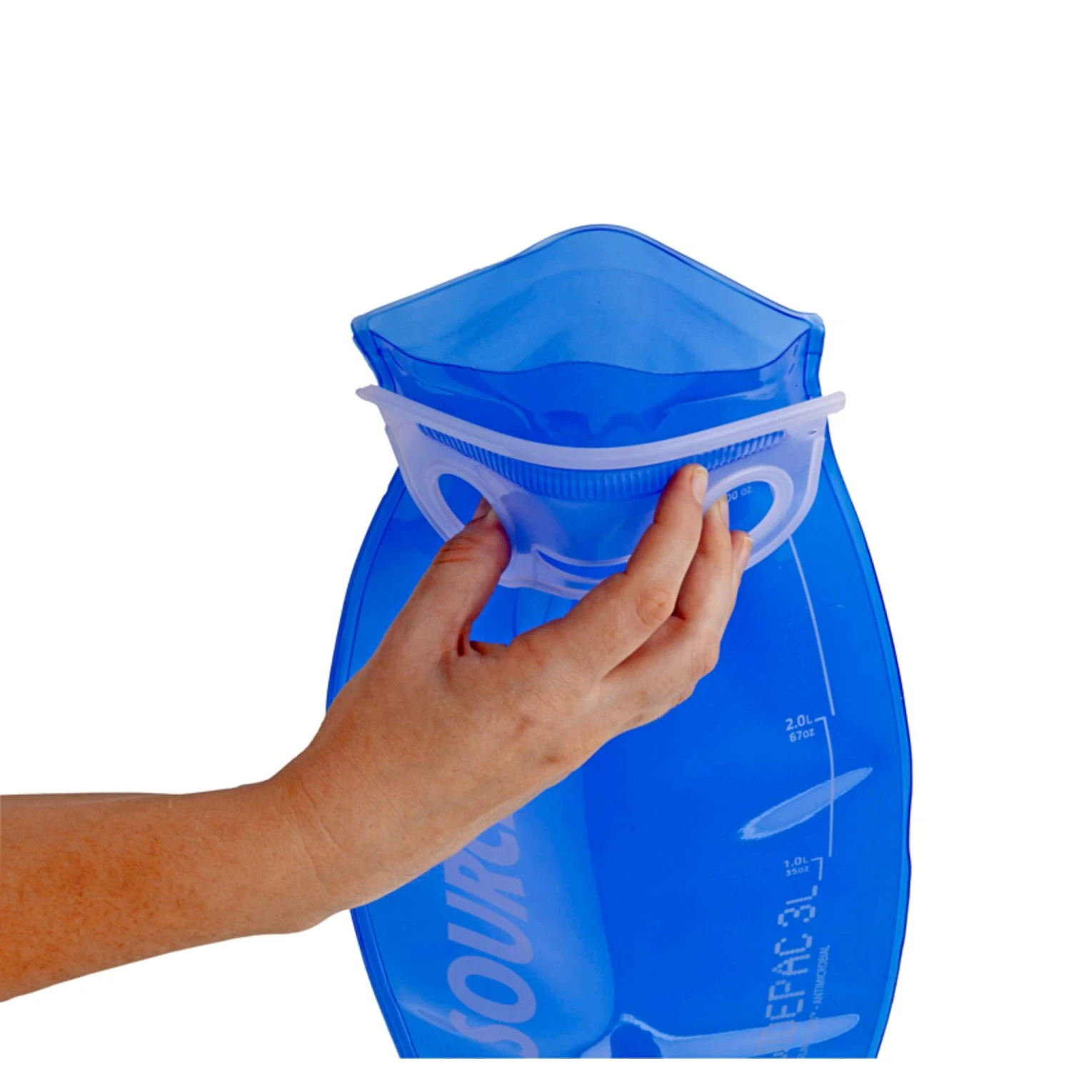 Der breite Bügel zum Aufhängen im Rucksack ist gleichzeitig der Klemmverschluss des Widepac 2: Das Wasser-Reservoir kannst du mit diesem Verschluss weit öffnen, um es zu befüllen, zu säubern oder zu trocknen.