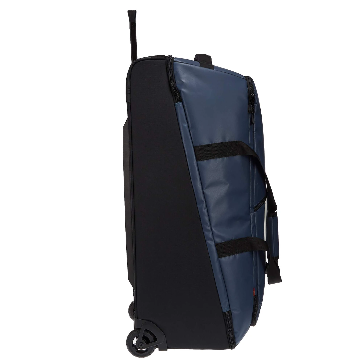 Das wasserabweisende, planenartige Außenmaterial des Rotuma 90 wird umweltfreundlich und ganz ohne PVC hergestellt. Das robuste Material hält kurzen Regenschauern und raueren Umgangsweisen stand. Auch sonst ist der Trolley hart im Nehmen. Der Teleskopgriff ist äußerst stabil und die Rollen sind austauschbar.